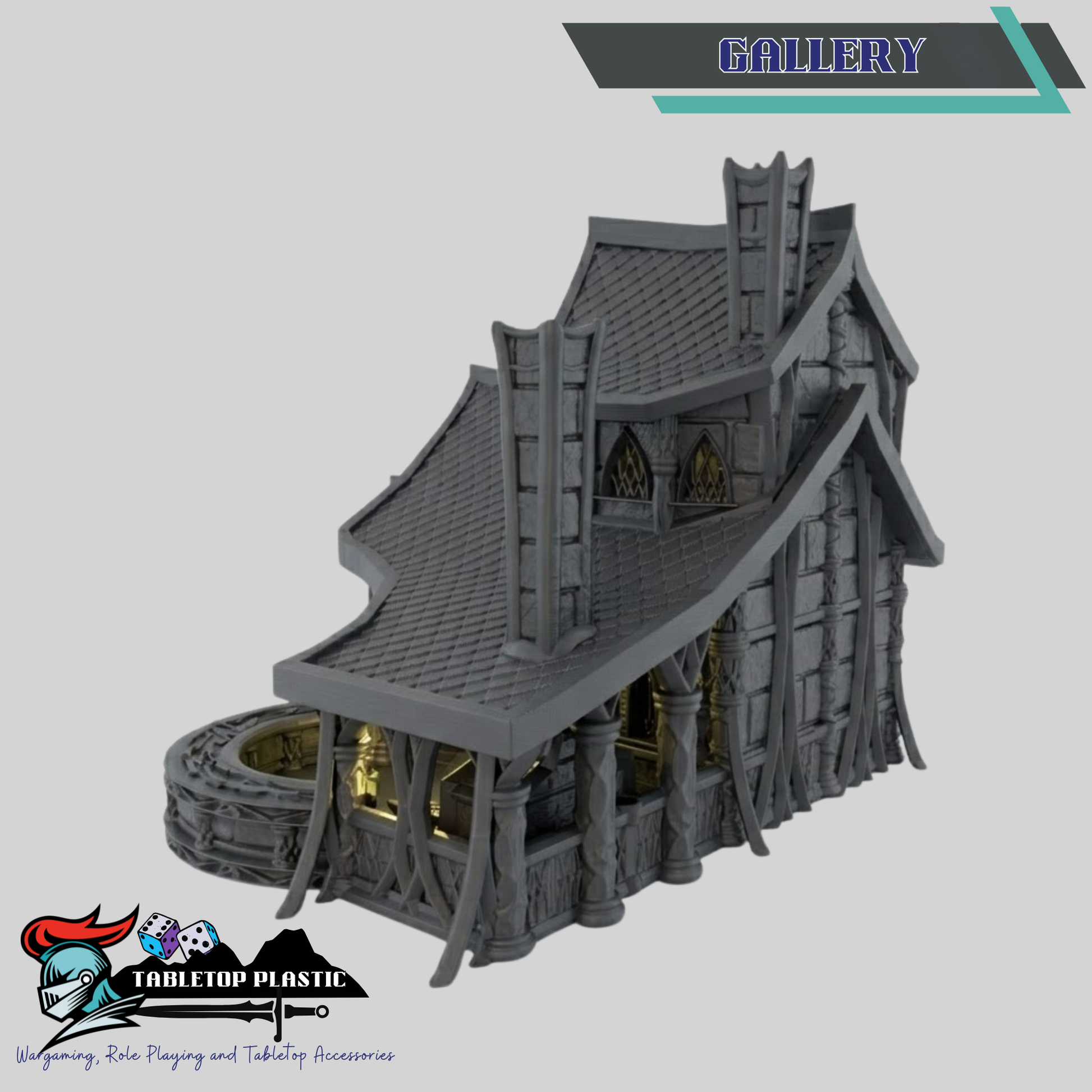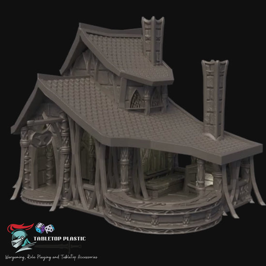 Printed in black PLA (unpainted) for a durable, paint-ready finish, the Elven Blacksmith is built for dramatic hobby results—clean elven architecture with a warm “forge glow” paint opportunity that looks incredible on the table and in photos. Drop it into an elven market street, palace district, or forest city board to instantly make the settlement feel lived-in and prosperous.