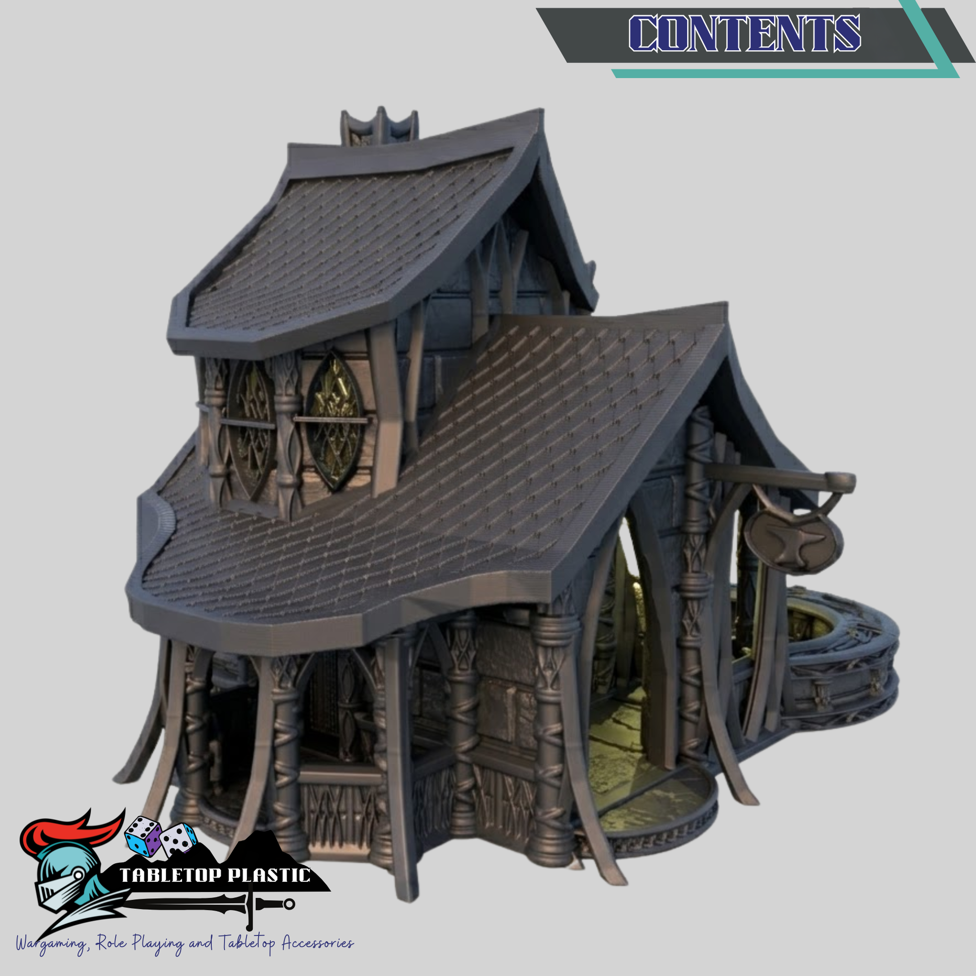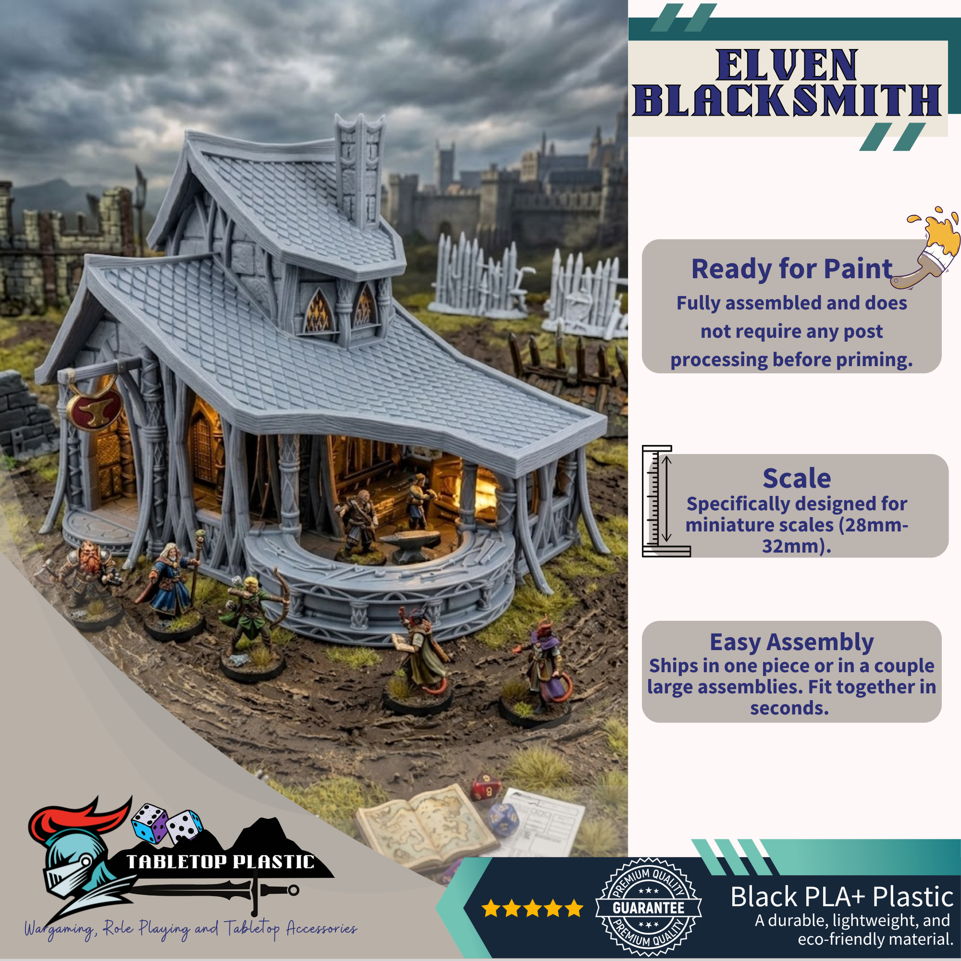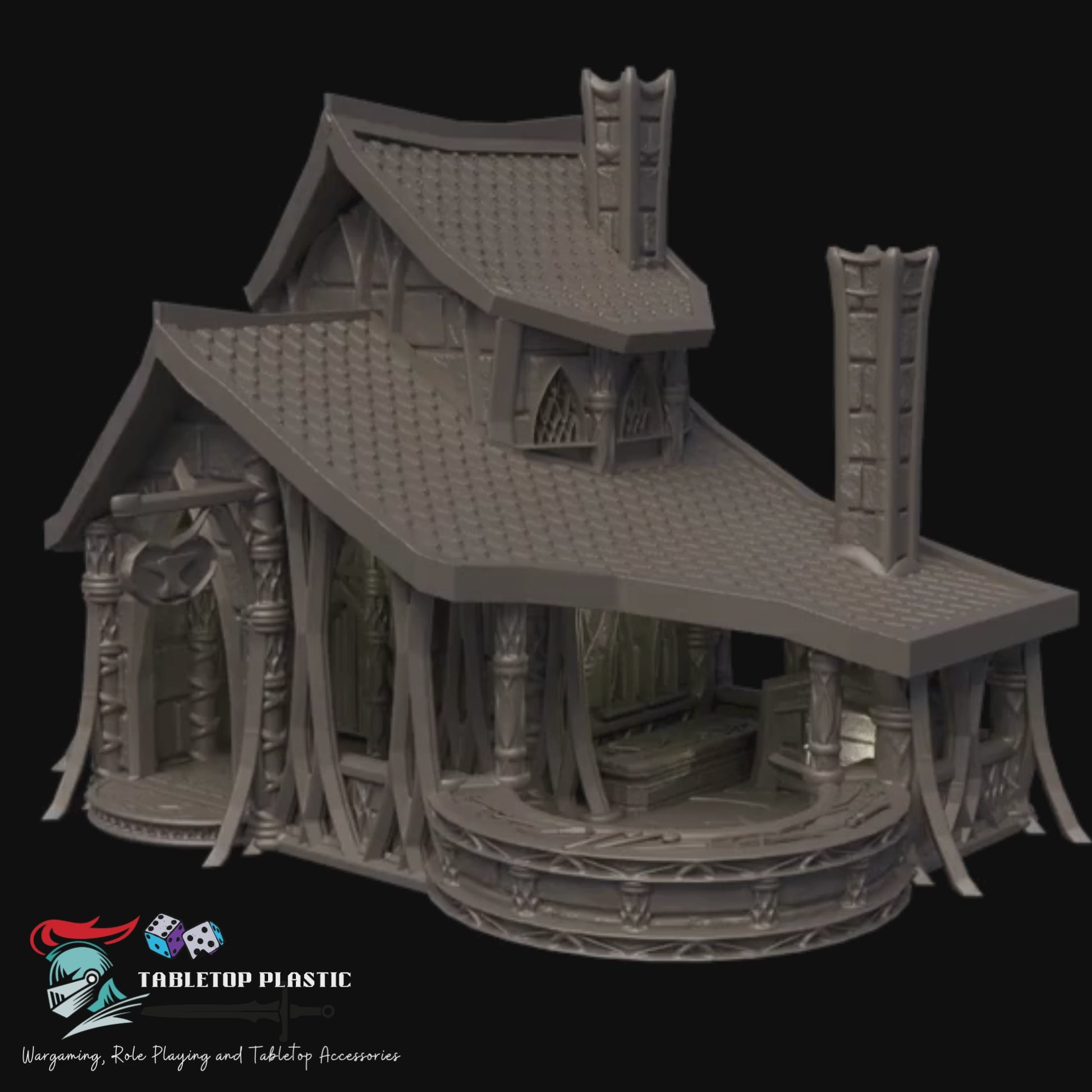 Add a high-status craft landmark to your tabletop with the Elven Blacksmith—an elegant forge shop designed to anchor noble-city scenes and “craft district” missions. This is where masterwork blades are commissioned, enchanted metal is worked, and valuable contracts change hands—making it a perfect objective location for intrigue and action alike: protect the forge during a raid, stop a sabotage plot, chase a thief who stole a legendary weapon-in-progress, or negotiate with the smith while enemies close in.