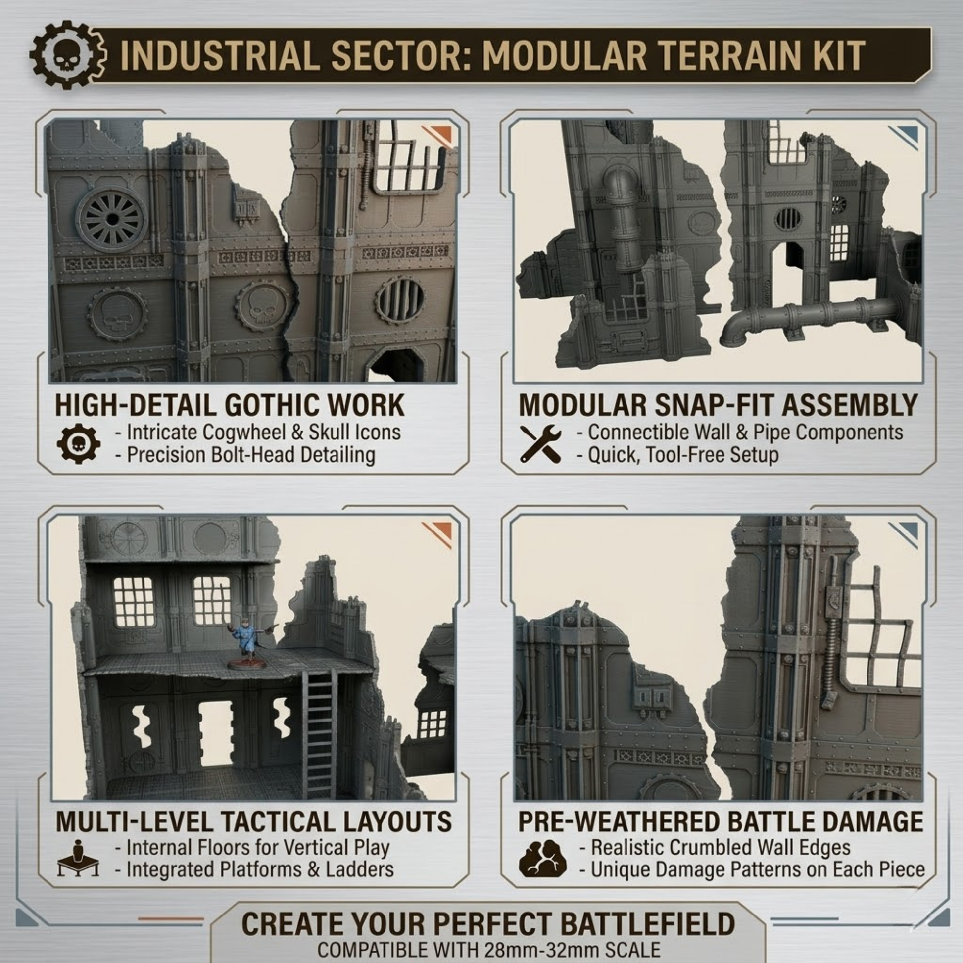 - Scale & compatible systems: Built for 28–32mm grimdark sci-fi tabletop play.